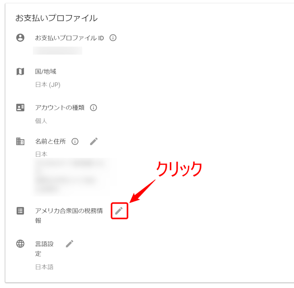 「アメリカ合衆国の税務情報」の横にあるペンマークをクリック